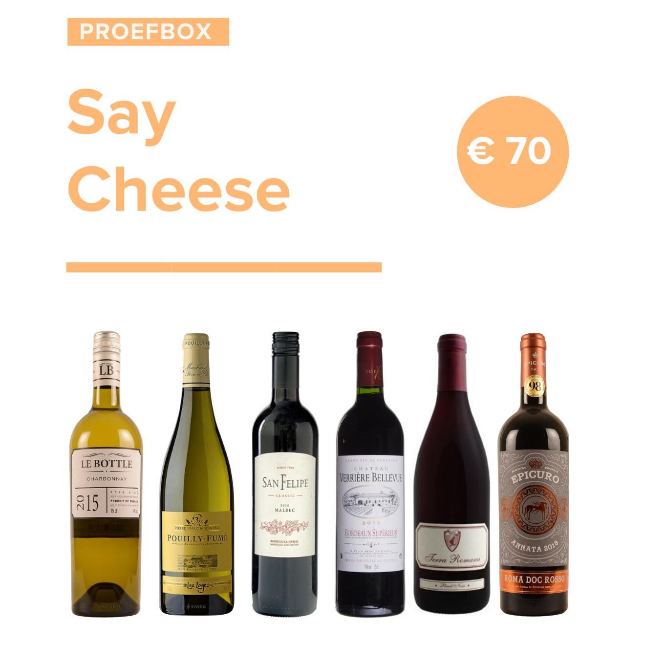 De periode bij uitstek voor een kaasplank met heerlijke wijnen. Deze proefbox bevat 6 wijnen die goed matchen met verschillende soorten kaas. Haast jullie naar de lokale kaasboer en say: