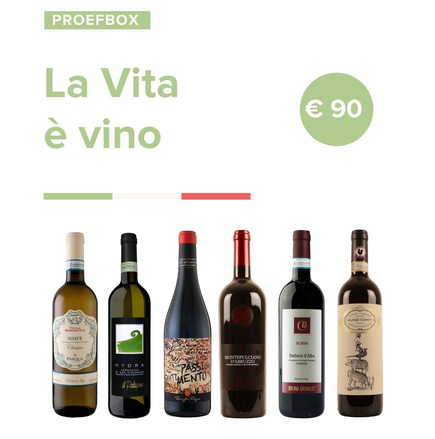 Met deze proefbox nemen we jullie mee doorheen la bella Italia. Onze trip start in het noorden bij Piemonte en Veneto. Next stop: Toscane. Hier selecteerden wij een Vernaccia di San Gimignano en een Rosso di Montepulciano voor jullie. We eindigen met een top Chianti Classico. Salute!