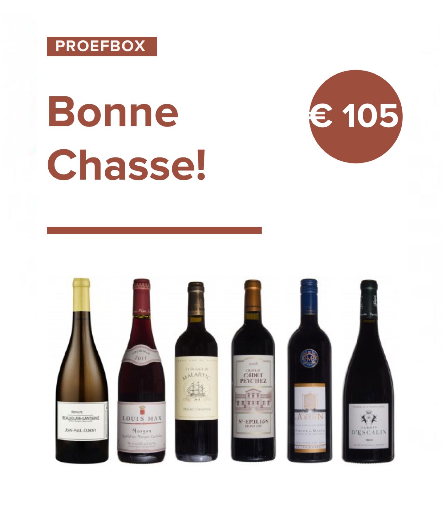Het jachtseizoen is geopend! Met deze box voorzien wij de perfecte wijnen bij al het wild dat je hebt geschoten. Kook je met klein wild, groot wild of een lekker stoofpotje, we voorzien bij alles twee wijnen die je maaltijd helemaal af maken. Bonne Chasse!